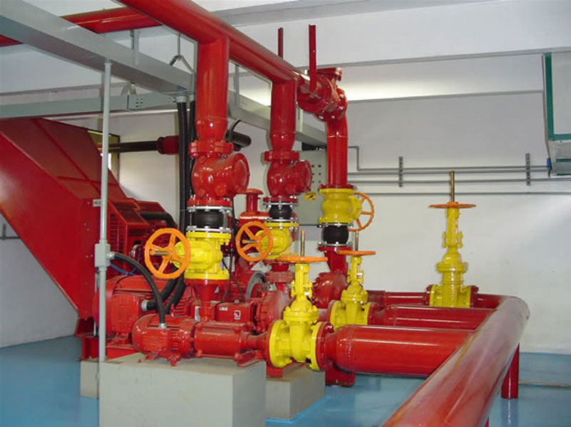 Um sistema de bomba de incêndio em seu projeto inclui motobomba com motor diesel e/ou motor elétrico, motobomba jockey, painéis de controle, válvula de sucção, recalque, válvula de alívio, linhas sensoras, tanque de combustível, interligações elétricas, tubulações e demais acessórios.